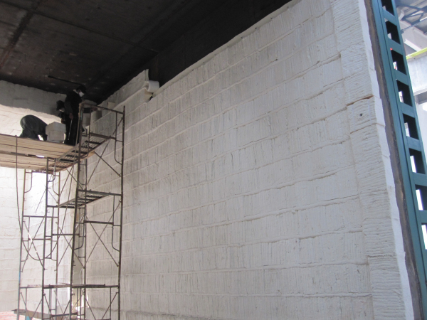 爐頂與爐墻結合部位密封處理:爐頂與爐墻連接處是襯里的薄弱區,容易形成漏氣或竄火,使爐襯的保溫效果降低,同時影響爐襯的使用壽命。為防止該部位出現貫通縫,墻與墻、墻與頂的連結處采用陶瓷纖維模塊與陶瓷纖維背襯毯錯縫連結方式。同時為防止熱面層陶纖模塊連結處的高溫收縮,在墻頂結合處設置一條補償縫,采用與模塊同等材質纖維毯對折,保持30%以上的壓縮比,強行塞入,確保該部位的高溫密封效果。爐墻與爐頂連接處處理如下圖: